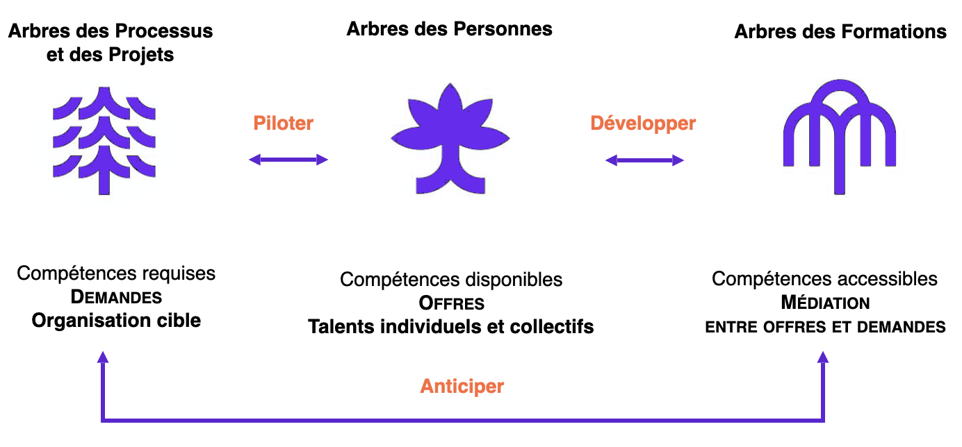 Pour ce faire, un arbre de talents rend simple à lire la complexité de votre écosystème de compétences. Via une plateforme contributive, cette cartographie dynamique permet reconnaître et de mobiliser de façon optimale votre capital humain en rendant visibles les talents individuels et collectifs. On voit aussi les manques, ainsi que vos ressources dormantes pour les combler.